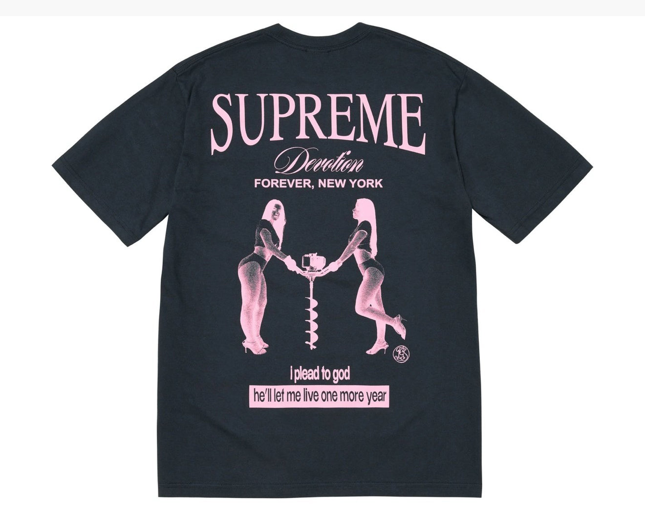 All cotton classic Supreme t-shirt with printed graphic on chest and back. Original artwork by Flannery Silva.